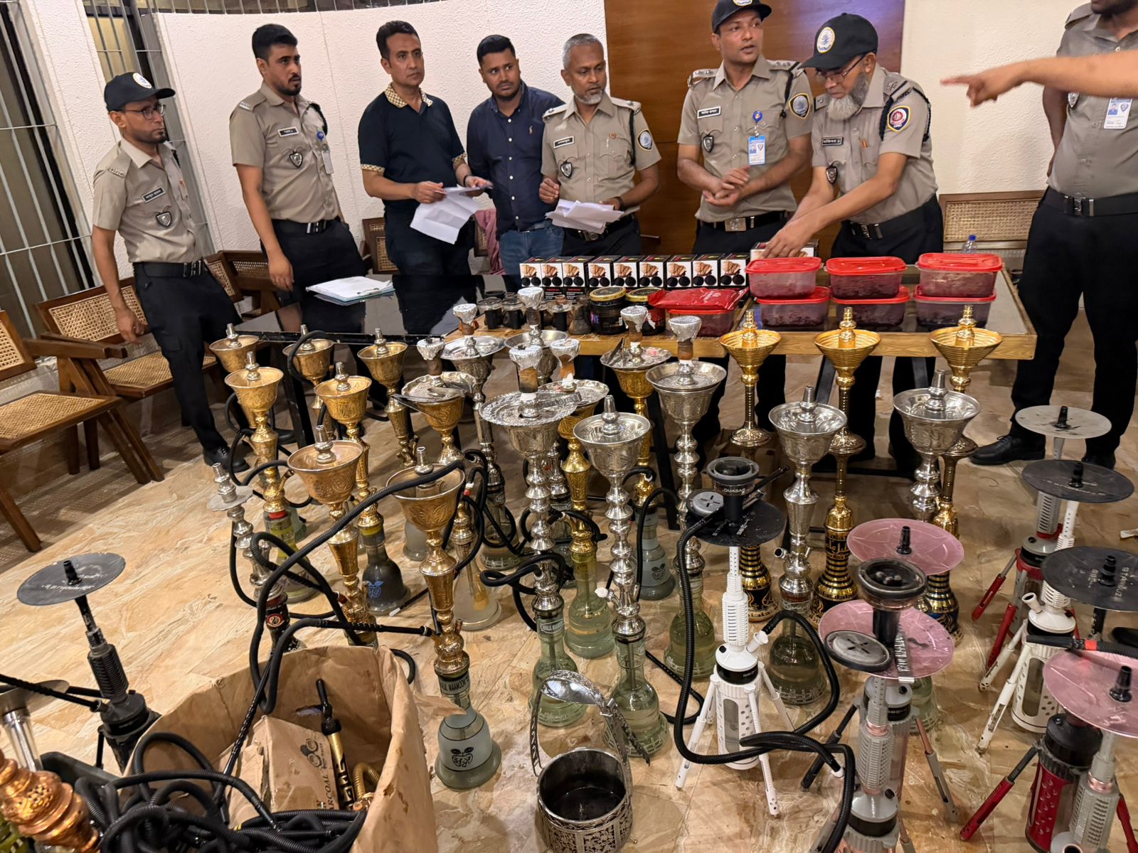রাজধানীর গুলশান-২ নম্বরে অবস্থিত দ্য কোর্টইয়ার্ড বাজার লাউঞ্জে অভিযান পরিচালনা করছে মাদকদ্রব্য নিয়ন্ত্রণ অধিদপ্তর (ডিএনসি)। অভিযানে এখন পর্যন্ত বিপুল পরিমাণের শিশা ও শিশা সেবন করার উপকরণ জব্দ করা হয়েছে৷ এছাড়া বারের ম্যানেজারকে অভিযানে আটক করা হয়েছে।