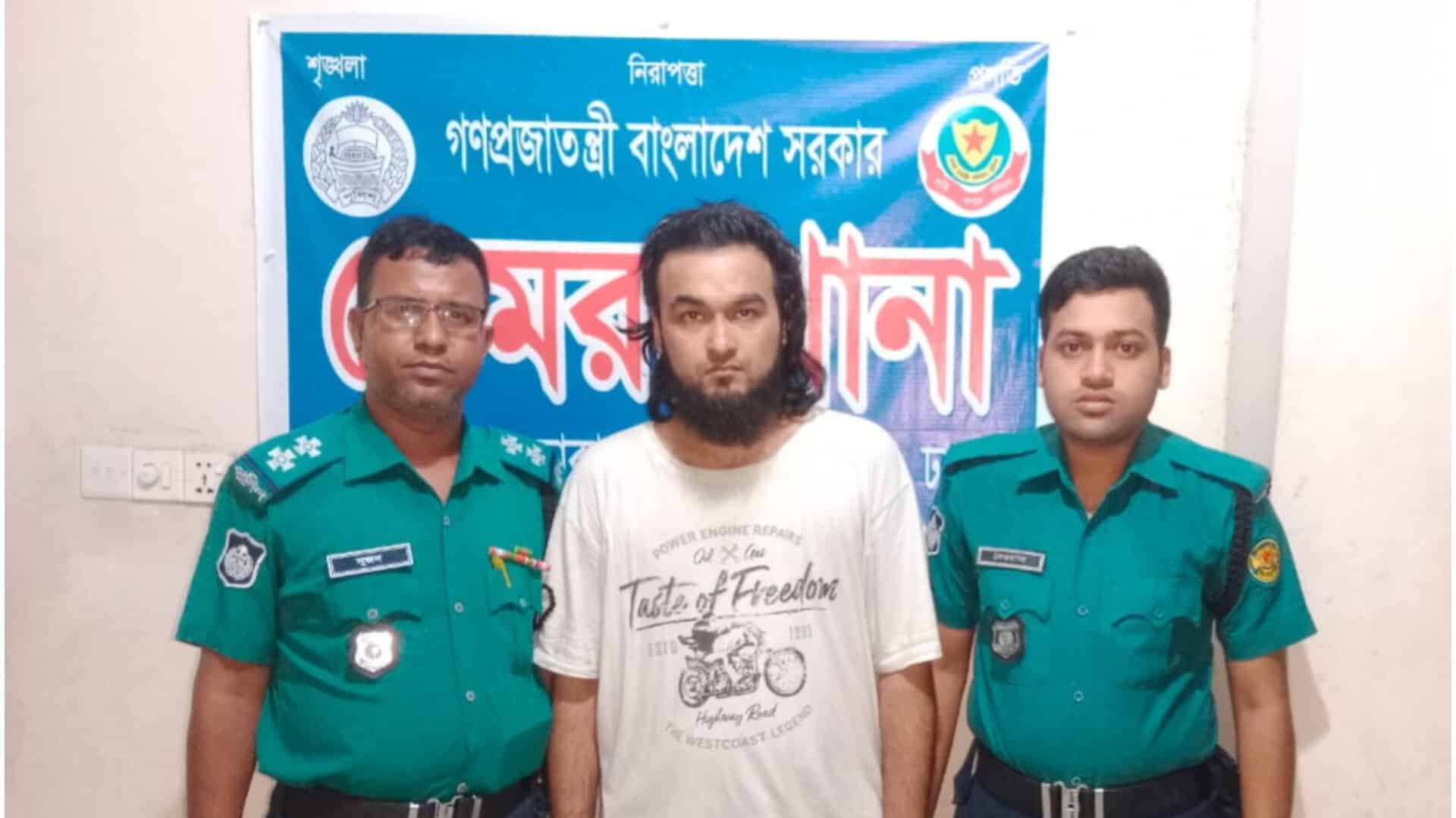 ▪সোমবার (২০ মে) রাত ২টার দিকে রাজধানীর ডেমরা থানাধীন স্টাফ কোয়ার্টার এলাকা থেকে তাকে গ্রেপ্তার করা হয়।’