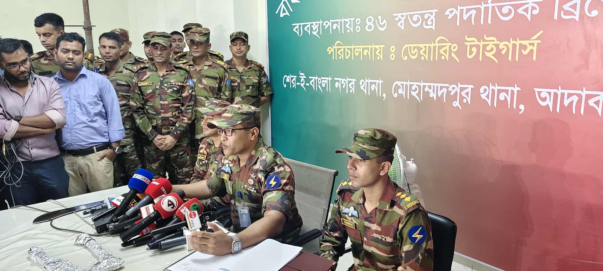 সাংবাদিকদের এক প্রশ্নের জবাবে সেনাবাহিনীর এই কর্মকর্তা আরো বলেন, ”এখন পর্যন্ত আমরা ৩০৬ টি আগ্নেয়াস্ত্র উদ্ধার ও প্রায় ৮২১৫ রাউন্ড এমনেশান উদ্ধার করতে পেরেছি সেগুলো সংশ্লিষ্ট থানায় জমা দিয়েছি। আজকের অভিযান ছাড়া ৫৩৮ টি ধারালো অস্ত্র উদ্ধার করে বিভিন্ন থানায় জমা দেওয়া হয়েছে। এছাড়া আমাদের কাছে আদাবর শেরেবাংলা মোহাম্মদপুর থেকে ৮১৮ জনকে বিভিন্ন সন্ত্রাসী কর্মকান্ড, মাদক ব্যবসায়ী ও দুষ্কৃতিকারীকে গ্রেপ্তার করেছি।’