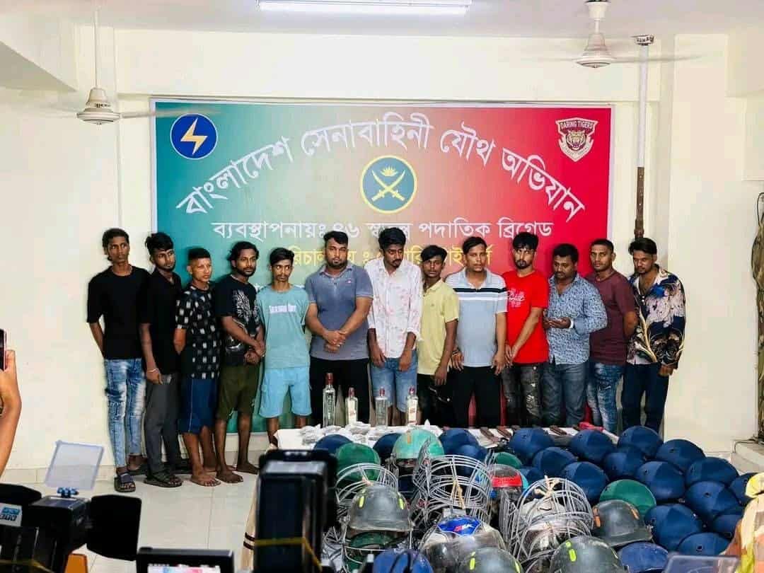 অভিযানে গ্রেপ্তারদের কাছ থেকে হেলমেট, লাইফ জ্যাকেট, সামুরাই, চাপাতি, পেট্রোল বোমা তৈরির সরঞ্জাম ও মাদকদ্রব্য উদ্ধার করা হয়। সেনা কর্মকর্তা আরও জানান, “এই আসামিদের কাছ থেকে তথ্য নিয়ে বাকি সদস্যদের ধরতে পুনরায় অভিযান চালানো হবে।”