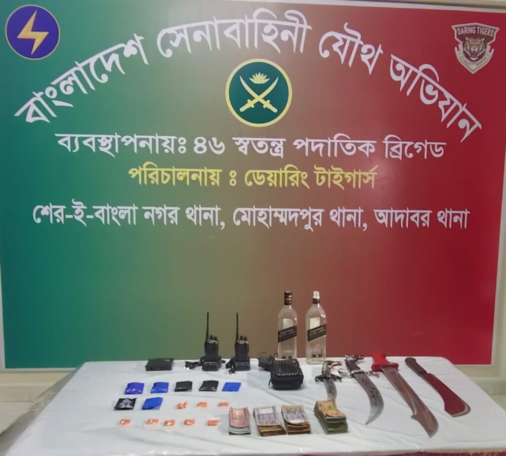 রাজধানীর মোহাম্মদপুরের জেনেভা ক্যাম্পে ফের যৌথ অভিযান চালিয়ে ইয়াবা, নগদ টাকা, ওয়াকিটকি সেট ও দেশীয় অস্ত্র উদ্ধার করেছে সেনাবাহিনী ও মাদকদ্রব্য নিয়ন্ত্রণ অধিদপ্তর (ডিএনসি)। অভিযানে তিনজনকে গ্রেপ্তার করা হয়েছে।’