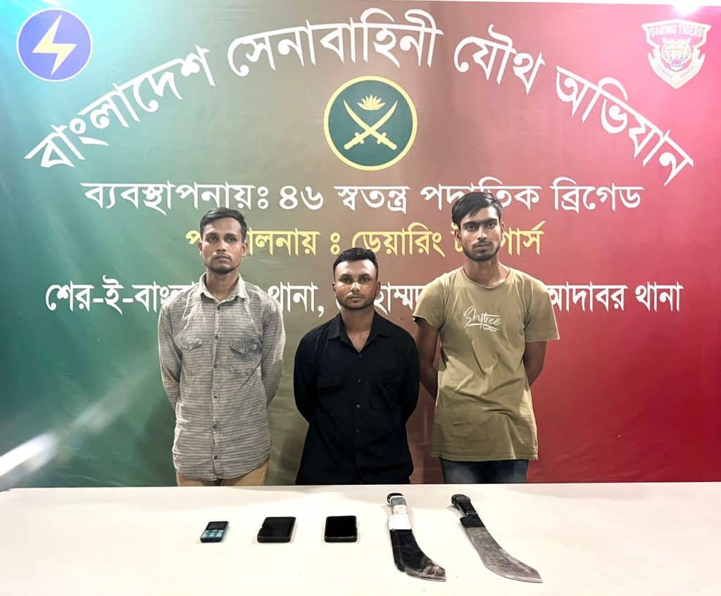 তিনি জানান, গতকাল সকালবেলা বালুমাঠ এলাকায় একটি হত্যাকাণ্ডের খবর পায় সেনাবাহিনী। এই ঘটনায় জড়িতদের ধরতে মোহাম্মদপুর এলাকায় তথ্যপ্রযুক্তির সহায়তায় সন্দেহভাজন গ্রুপের সদস্যদের অবস্থান নির্ণয় করা হয়। এরপর বিভিন্নভাবে তথ্য সংগ্রহ করে জানা যায়, এলেক্স সবুজ, মনির ও ইমন এই হত্যাকাণ্ডের সাথে জড়িত।পরে রাত সাড়ে ৯ টার দিকে ঘটনায় জড়িত ইমন ওরফে ভাইগ্না ইমন ওরফে দাঁত ভাঙা ইমন তার দুই সহযোগী ইব্রাহিম ও আলামিনকে দুইটি সামুরাইসহ গ্রেপ্তার করা হয়।’