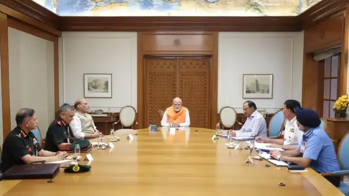 প্রতিবেদন অনুযায়ী, ‘প্রধানমন্ত্রী মোদি উচ্চপর্যায়ের এক জরুরি বৈঠকে এ ঘোষণা দেন। বৈঠকে উপস্থিত ছিলেন প্রতিরক্ষা মন্ত্রী রাজনাথ সিং, জাতীয় নিরাপত্তা উপদেষ্টা অজিত ডোভাল এবং প্রতিরক্ষা প্রধান জেনারেল অনিল চৌহান।’
