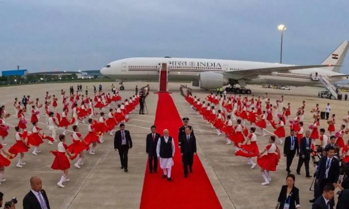 তিয়ানজিনের বিনহাই আন্তর্জাতিক বিমানবন্দরে মোদিকে লাল গালিচা সংবর্ধনা জানানো হয়। চীনের তথ্য, সম্প্রচার ও শিল্পমন্ত্রী লি লেচেং উপস্থিত থেকে তাকে উষ্ণ অভ্যর্থনা জানান। শিল্পীদের প্রাণবন্ত সাংস্কৃতিক পরিবেশনা ভারত-চীন সম্পর্কের ঐতিহাসিক বন্ধনের প্রতীক হিসেবে তুলে ধরা হয়।’