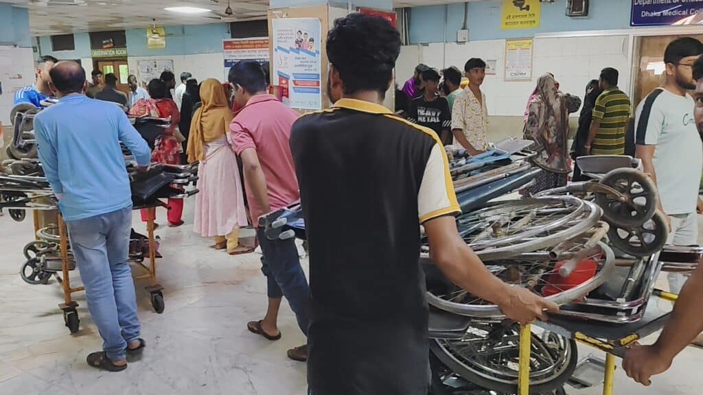 নাম প্রকাশে অনিচ্ছুক জরুরি বিভাগের কয়েকজন কর্মচারী জানান, ‘হাসপাতালে এর আগে এসব অবৈধ হুইলচেয়ার কম থাকলেও ৫ আগস্টের পর ১০০ হুইলচেয়ার নিয়ে এসব দালাল চক্র রোগীদের সাথে প্রতারণা এবং মোটা অংকের টাকা হাতিয়ে নেয়। হাসপাতালে বিভিন্ন অসাধু সরকারি কর্মচারীরা তাদেরকে আশ্রয় প্রশ্রয় দিয়ে থাকে।’