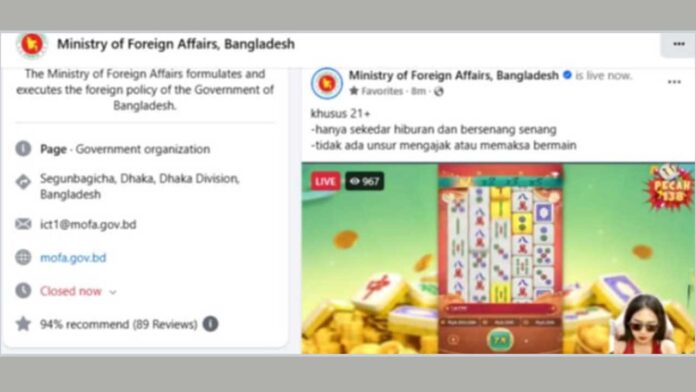 পররাষ্ট্র মন্ত্রণালয়ের অফিসিয়াল ফেসবুক পেজ হ্যাক