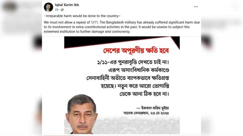 ‘১/১১-এর পুনরাবৃত্তি দেখতে চাই না’ সাবেক সেনাপ্রধান ইকবাল করিম