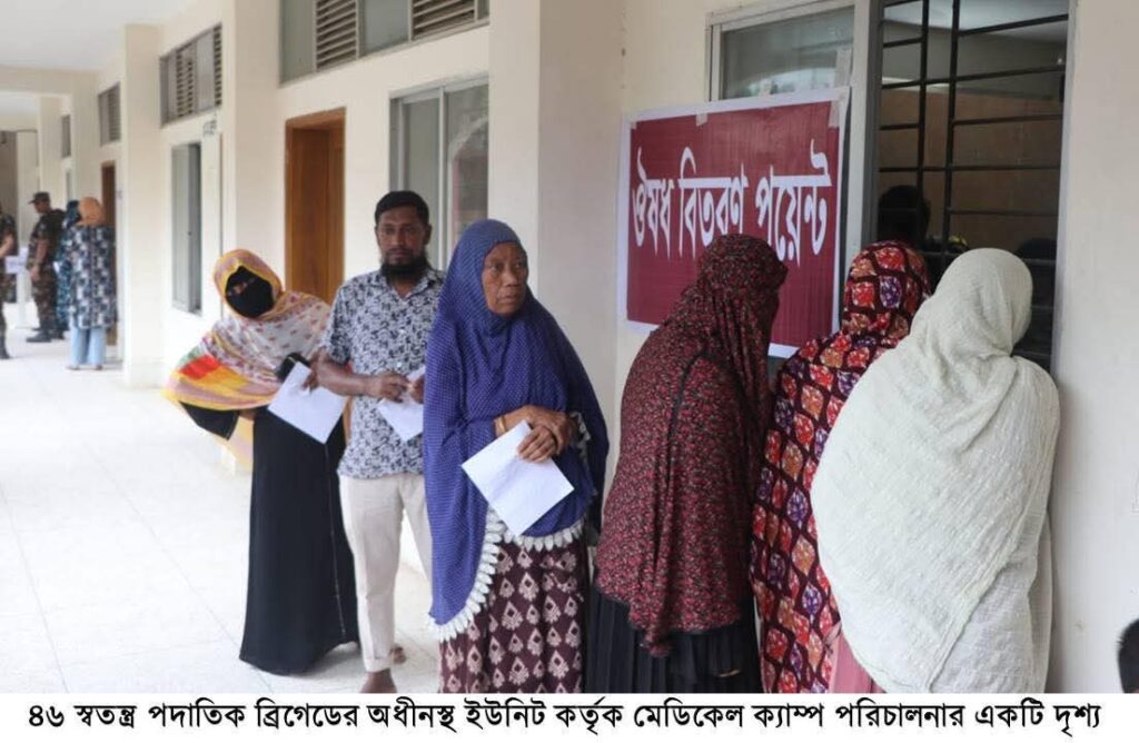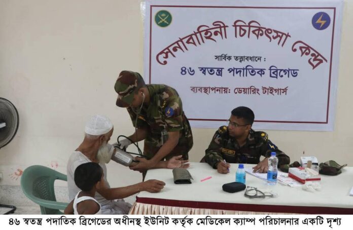 শুক্রবার (১৮ জুলাই) বাংলাদেশ সেনাবাহিনীর ৪৬ স্বতন্ত্র পদাতিক বিগ্রেডের উদ্যোগে দিনব্যাপী এই চিকিৎসা সহায়তা কার্যক্রম পরিচালিত হয়।