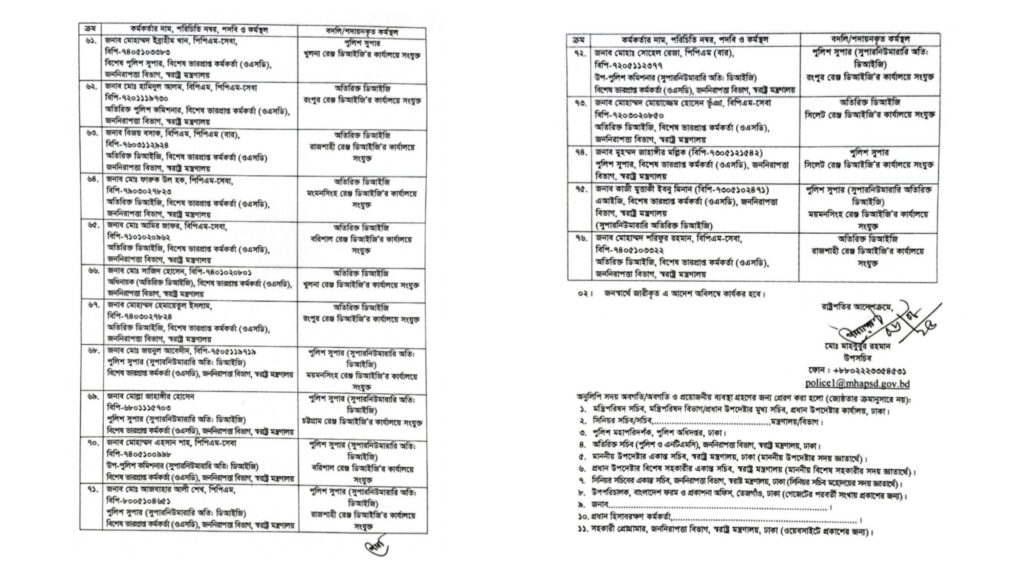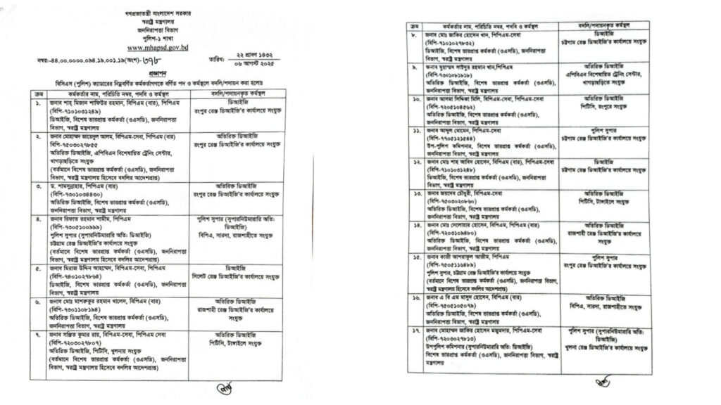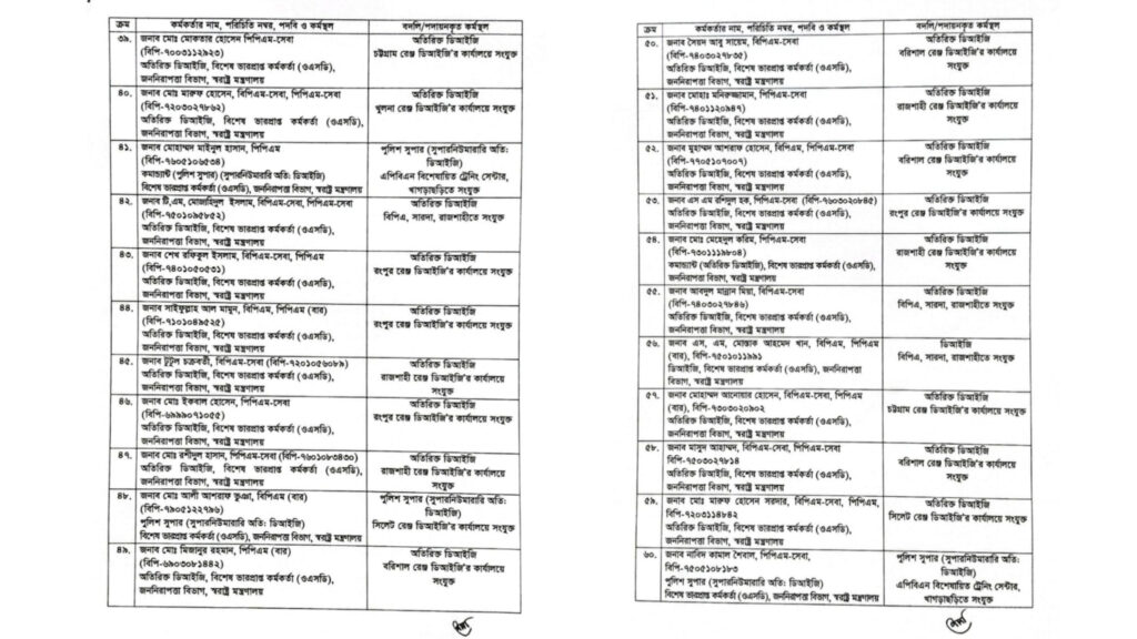 সূত্রমতে, সাম্প্রতিক সময়ে মাঠ পর্যায়ে দক্ষ নেতৃত্ব প্রতিষ্ঠার পাশাপাশি ন্যায্যতা নিশ্চিতের উদ্দেশ্যে এই বদলি প্রক্রিয়া সম্পন্ন হয়েছে। স্বরাষ্ট্র মন্ত্রণালয় জানিয়েছে, বদলি হওয়া কর্মকর্তাদের দ্রুত দায়িত্ব বুঝে নেওয়ার নির্দেশনা দেওয়া হয়েছে।”