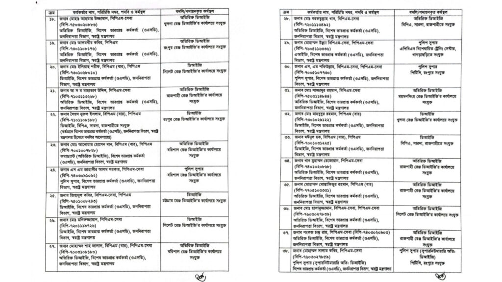 নতুন প্রজ্ঞাপনে বলা হয়, বদলি হওয়া কর্মকর্তাদের মধ্যে ৪৬ জন অতিরিক্ত ডিআইজি, ১২ জন সুপারনিউমারারি পদোন্নতিপ্রাপ্ত এবং ৭ জন পুলিশ সুপার পদমর্যাদার কর্মকর্তা রয়েছেন।”