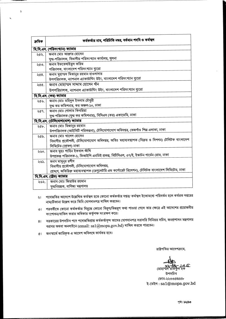 পদোন্নতি কৃত কর্মকর্তাদের তালিকা নিচেই দেয়া হলো