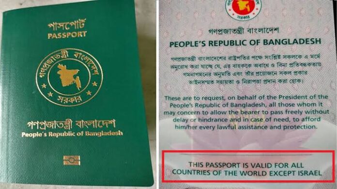 ➡বাংলাদেশের পাসপোর্টে পুনরায় ‘Except Israel (ইসরায়েল ব্যতীত) শব্দ দুটি পুনর্বহাল করা হয়েছে।‘