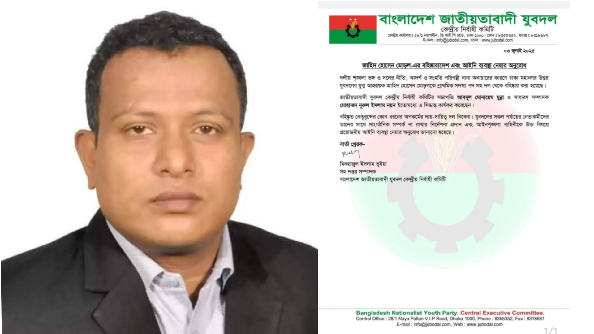 বৃহস্পতিবার (৩ জুলাই) যুবদলের সহ-দপ্তর সম্পাদক মিনহাজুল ইসলাম ভূঁইয়ার স্বাক্ষরিত এক বিজ্ঞপ্তির মাধ্যমে এ বহিষ্কারের ঘোষণা দেওয়া হয়।”