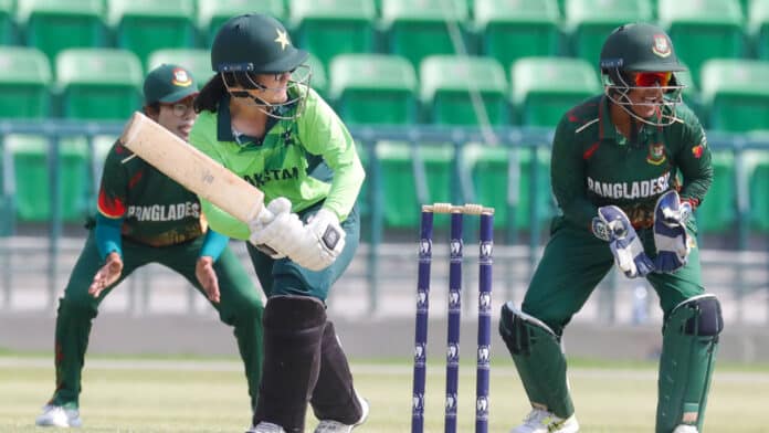 ‘লাহোরের গাদ্দাফি স্টেডিয়ামে টসে জিতে ব্যাট করতে নেমে সর্বোচ্চ ৭০ রানের ইনিংস খেলেন অধিনায়ক নিগার সুলতানা জ্যোতি। ফারজানা হক রিটায়ার্ড হার্ট হওয়ার আগে ব্যক্তিগত পঞ্চাশ ছুঁয়েছেন। এ ছাড়া ব্যক্তিগত ৪৬ রানে অপরাজিত ছিলেন জান্নাতুল ফেরদৌস। পাকিস্তানের মেয়েদের হয়ে তিনটি করে উইকেট পেয়েছেন উম্মে-ই-হানি ও ওয়াহিদা আক্তার।’